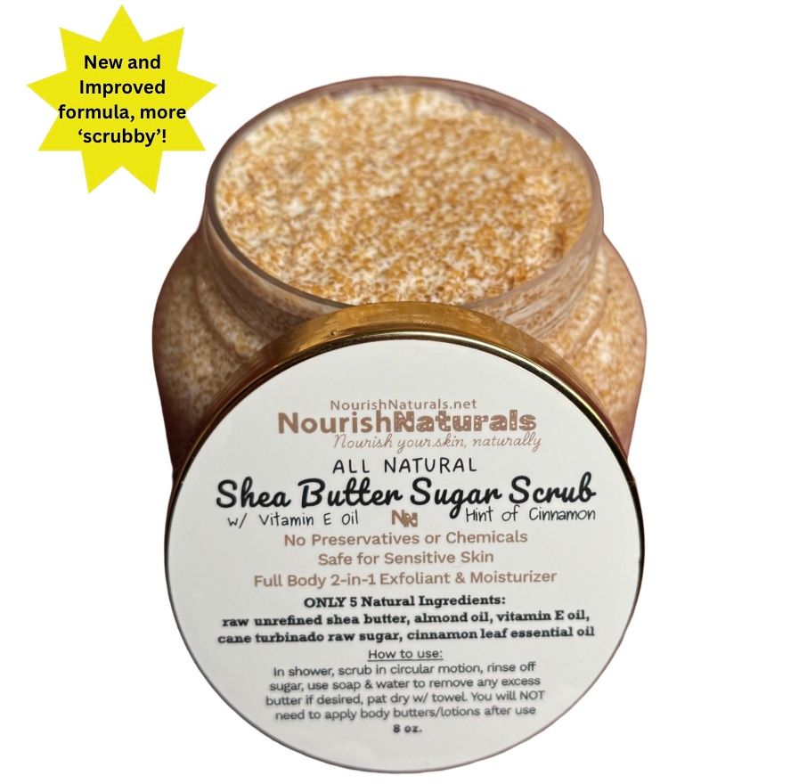 After going on a deep dive online to find a shea butter scrub that had zero preservatives, chemicals, or synthetic fragrances, and had only simple natural ingredients.... we couldn't find any! And thats how NourishNaturals was born. We wanted to create products that fill that gap in our skincare and provide truly clean ingredients that you can trust (and actually pronounce!). The products and ingredients we put on our skin should always be clean and chemical free, after all, our skin is the biggest organ of the human body and we should treat it with care, not harsh chemicals. NourishNaturals uses only whole, natural, clean ingredients to make our products without making any sacrifices. Our products are homemade and handmade with care, always. Do your skin a favor- throw out that body scrub in your shower and that body butter on your counter and swap for NourishNaturals!